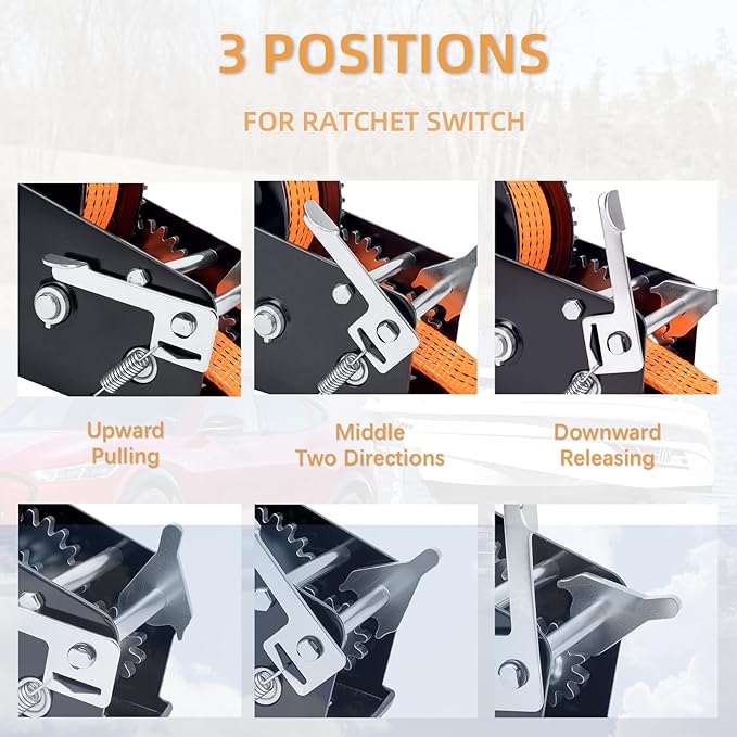 - 【Versatile Two-Way Ratchet】Experience seamless operation with our boat trailer winches. The stainless steel hook with a safety pawl allows effortless forward and backward ratcheting, enabling easy loading and unloading. With 2-way 2-speed functionality and 8:1/4:1 gear ratios, switch between high power (8:1) for heavy loads and high speed (4:1) for quick adjustments. The ratchet switch offers three positions: upward for pulling, middle for two-direction movement, and downward for releasing, ensuring ultimate control. This advanced design enhances pulling power and efficiency, making RVSNAIL boat winch ideal for diverse towing tasks, managing heavy loads with minimal effort.