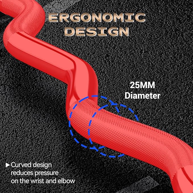 - Ergonomic Design: The Olympic EZ Curl Barbell Bar features a specially curved design that optimally reduces stress on the wrists and elbows, allowing for a comfortable grip during bicep and tricep exercises. This ergonomic approach enhances muscle engagement and ensures precise targeting of the desired muscle groups.