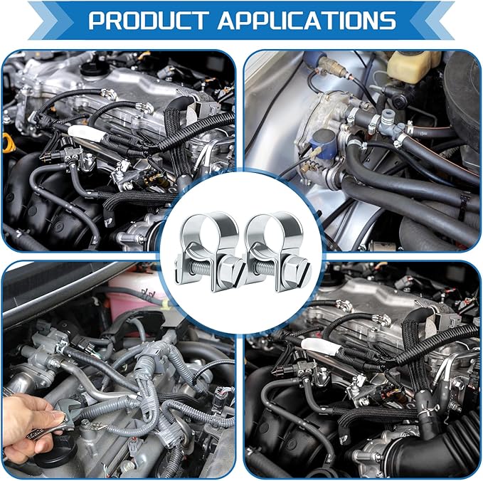 - WIDE APPLICATION: Fuel injection hose clamps are used to seal hoses to prevent liquid loss. Suitable for air pipes, water pipes, fuel pipes, silicone pipes, etc.