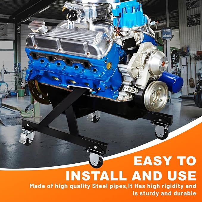 - 【360° Rolling Caster Wheels】360° rolling caster , easy to move and store, will not tip over or feel unstable. Even without the caster also can load the heavy engines well. loaded 8.1L big and heavy engine,it provides comprehensive support for engine replacement, competition modification, and custom installation.