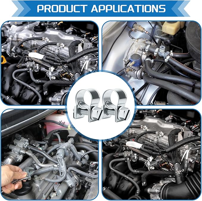 - WIDE APPLICATION: Fuel injection hose clamps are used to seal hoses to prevent liquid loss. Suitable for air pipes, water pipes, fuel pipes, silicone pipes, etc.