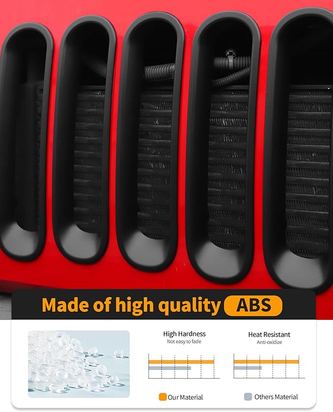- Unique Design: Wrangler JK Mesh Grille Inserts allow great airflow throughout so you won't have issues with overheating, Featuring an open mesh design, prevent gravel, papers, debris, stones, etc from entering your car.