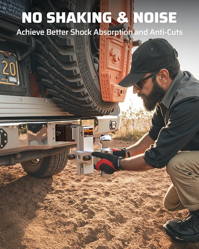 - IP 67 WATERPROOF WITH 5 SILENCERS PADS: Perfect unmatched performance in any weather conditions. Super practical and functional adjustable hitch which can achieve better shock absorption and anti-cuts. Meanwhile, Reduce rattle and movement when towing. These accessories are great help in extending the life of cars and trailers, as well as towing equipment. A noise-free and enjoyable trailer journey on the road