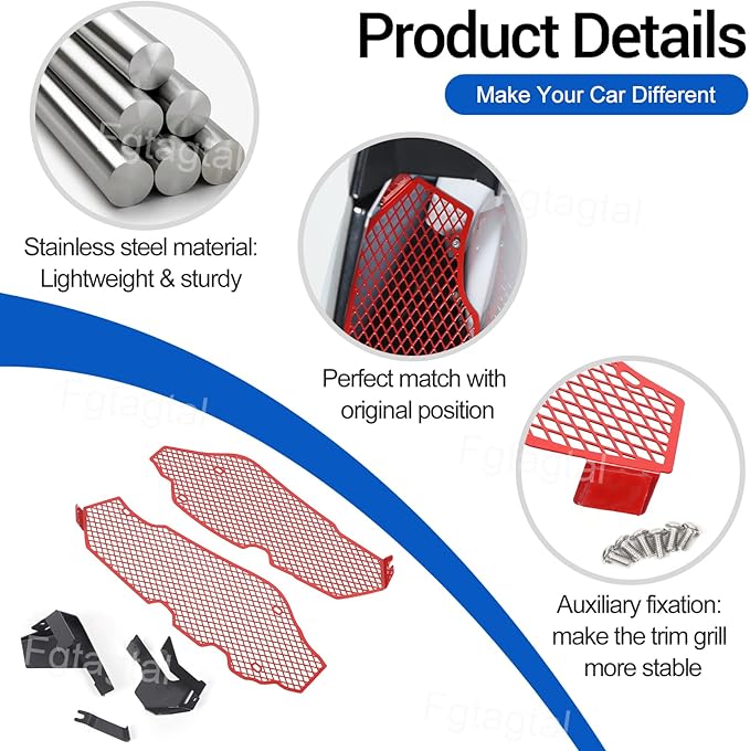 - 【EFFECTIVELY PROTECTION】: The radiator grille guards can effectively prevent the debris and impurities left in daily driving from falling into the side air intake and causing blockage, it is perfect and improve the aesthetics of your car interior and add distinctive color, makes your side air vent panel outlet look a lot better and protect it from anti-scratch and abrasion.