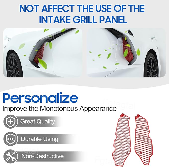 - 【APPLICABLE MODELS】: The side radiator grille guards compatible with Chevrolet Corvette C8 2020 2021 2022 2023 2024 2025, Not work for Corvette C8 Z06/E-ray 2023-2025 version! The size of the original car is customized.