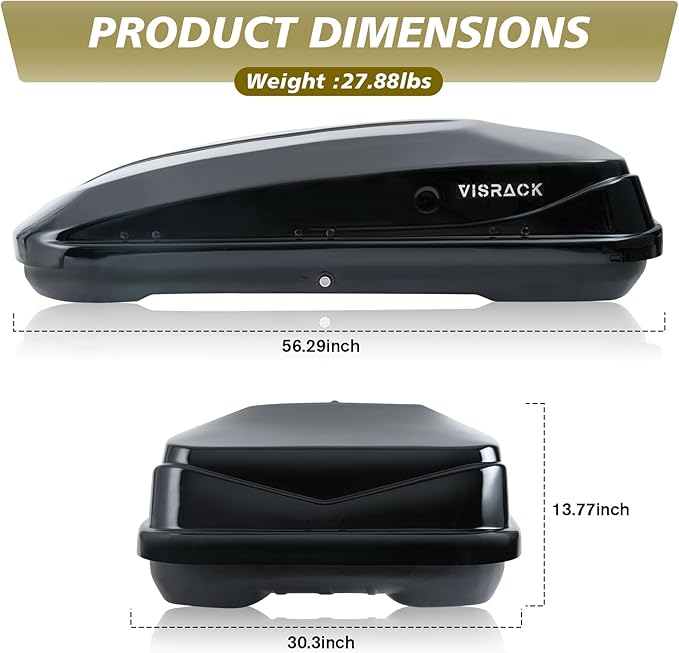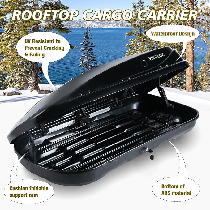 - DURABLE CONSTRUCTION: This car roof box is crafted from impact-resistant ABS and PMMA materials, combining strength with a glossy finish. The rugged design withstands harsh weather conditions while protecting your gear, supporting up to 130 lbs of evenly distributed weight