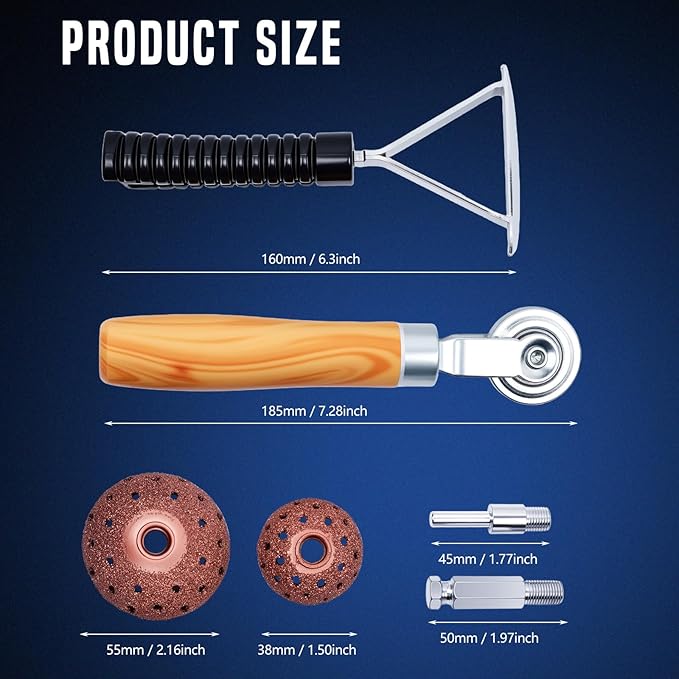 - Optimized Combination: The 55mm grinding head exclusively pairs with the high-speed rod for large-area grinding, while the 38mm head works with the low-speed rod for precision work. Together with the pressure wheel and scraper, this kit provides a complete buffing, grinding, and polishing solution