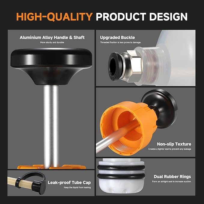 - DOUBLE-SEALED SECURITY: Oil extractor pump is made of strong and durable materials, with a double rubber ring design that creates an airtight seal, and a precision threaded design on the end of the tube that prevents any leakage