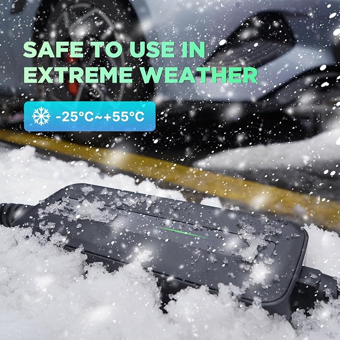 - 25FT Cable Length: The all-copper wire and TPU shell reduce power loss during current transmission, prevent excessive heat generation during charging, and make it easy to bend and store in cold weather. The 25-foot cord length is sufficient for multiple vehicles or outdoor use.
