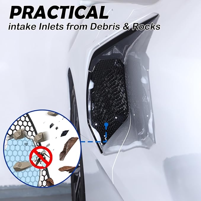 - Easy Installation:The Side Intake Mesh Grilles Insert Set Accessories installation is simple, no drilling is required, just remove the screws of the protective plate front intake grille vent, it can be installed in just a few minutes without affecting any operation of the car (For specific installation instructions, please refer to the installation video on the red model's details page.)