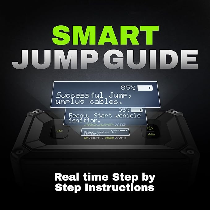 - LCD SCREEN WITH STEP-BY-STEP VISUAL GUIDANCE - Never guess how to jump start again. The clear LCD display provides easy-to-follow, on-screen instructions in English, Spanish, or French, making it completely beginner-friendly and stress-free.