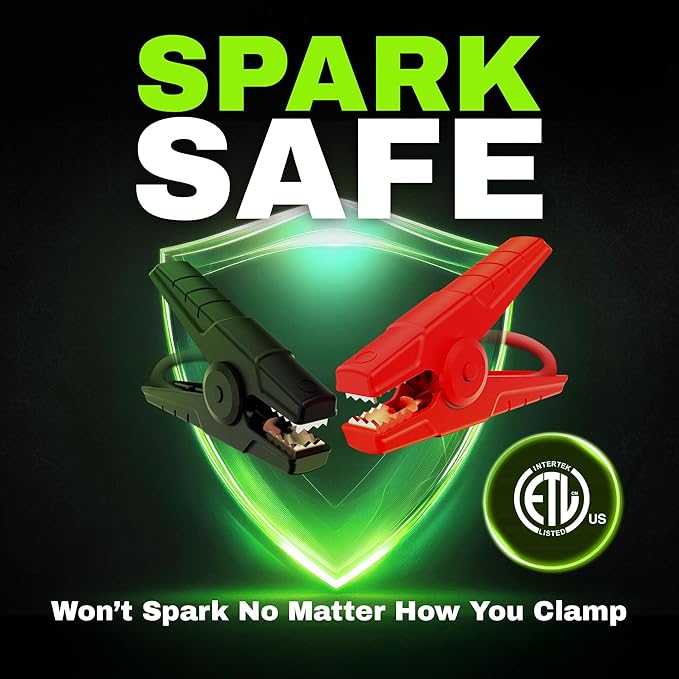 - PATENTED CROSS JUMP TECHNOLOGY – FOOLPROOF & SPARK-PROOF - Connect the clamps with absolute confidence. Our revolutionary technology automatically corrects reverse connections, eliminating the danger of sparks, explosions, or damage to your vehicle's electronics. It’s the safest way to jump start your car.