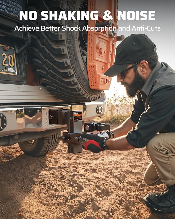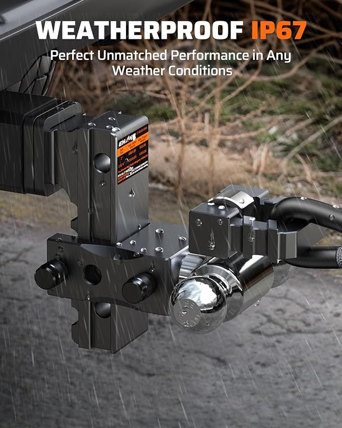 - IP 67 WATERPROOF WITH 5 SILENCERS PADS: Perfect unmatched performance in any weather conditions. Super practical and functional adjustable hitch which can achieve better shock absorption and anti-cuts. Meanwhile, Reduce rattle and movement when towing. These accessories are great help in extending the life of cars and trailers, as well as towing equipment. Without noise & enjoyable trailer journey on the road