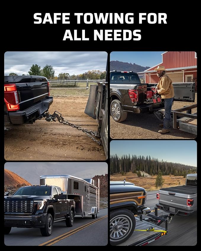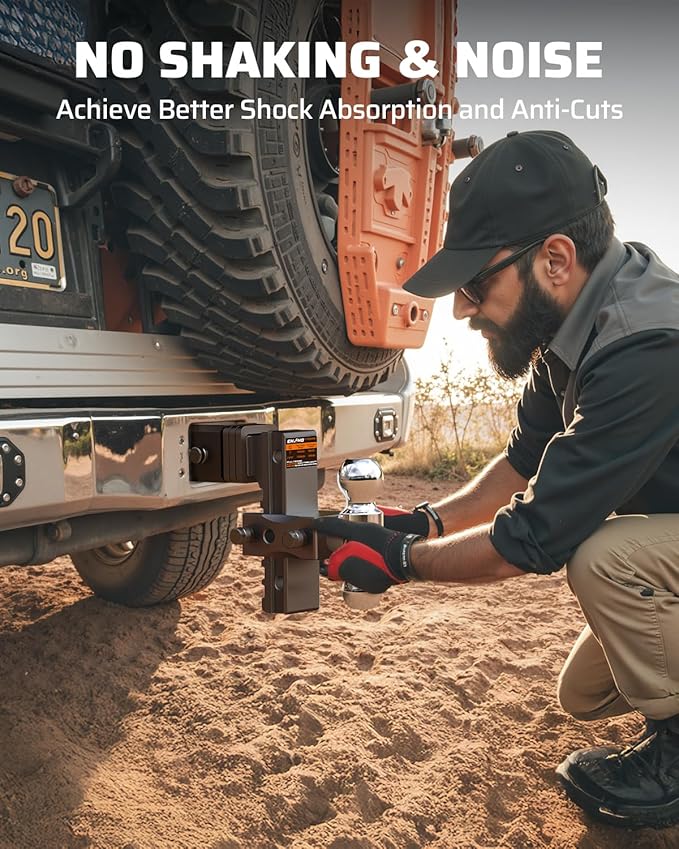 - IP 67 WATERPROOF WITH 5 SILENCERS PADS: Perfect unmatched performance in any weather conditions. Super practical and functional adjustable hitch which can achieve better shock absorption and anti-cuts. Meanwhile, Reduce rattle and movement when towing. These accessories are great help in extending the life of cars and trailers, as well as towing equipment. Without noise & enjoyable trailer journey on the road