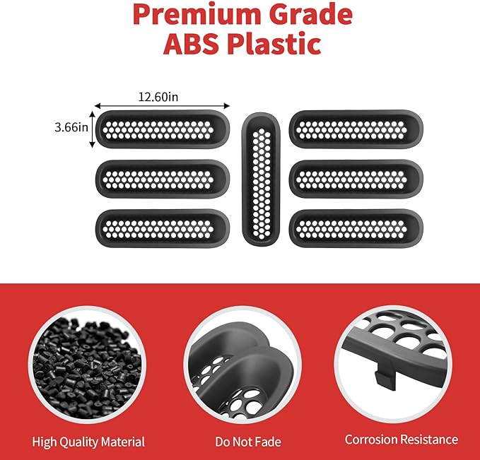 - Superior Quality --Our grille insert is made of high quality ABS plastic, used polish process for deformation protection, with impeccable wear-resisting, anti-corrosion and anti-scratch performance.