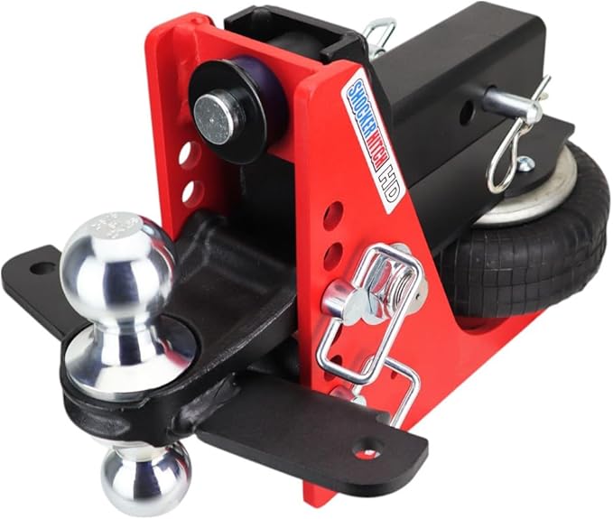 - Great for Trailer Sway: Air hitch absorbs road shock & smooths out the ride & the friction sway bars helps prevent trailer sway. This is great for camping trailers, cargo & heavy-duty trailers, travel trailers, race trailers & toy haulers. Combo Ball Mount Tow Rating: 2-5/16" ball rated at 20,000 lbs & 2" ball rated at 10,000 lbs with premium powder coat finish.