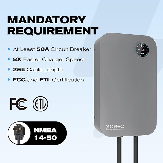 Level 2 EV Charger-40AMP 240V NEMA14-50 for J1772 EVS, WiFi Enabled Electric Vehicle Home Charging Station, ETL Certified, Password Lock Function, 25ft Cable, Grey