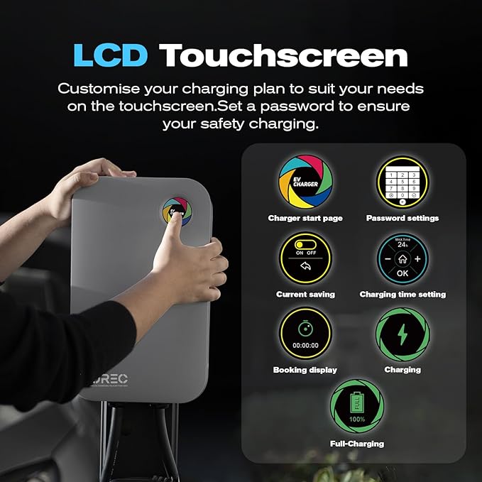 - Password Lock Function: Our product features an industrial-grade LCD touchscreen. It includes password protection, current adjustment and timing/delay functions. You can control wall mount without using the app.These features also can be disabled when not required.