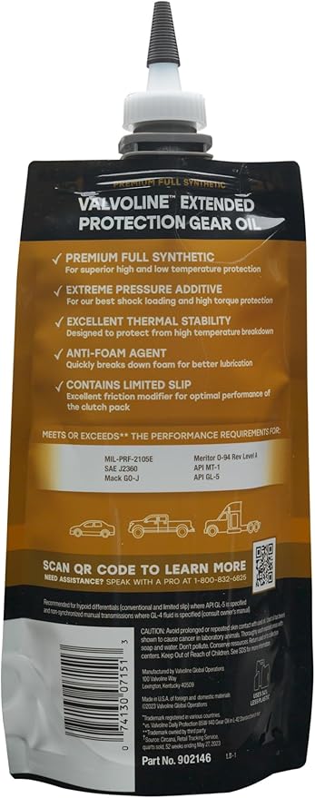 - Premium passenger car gear oil contains a limited slip friction modifier for optimal clutch pack performance and an extreme pressure additive for our best shock loading and high torque protection