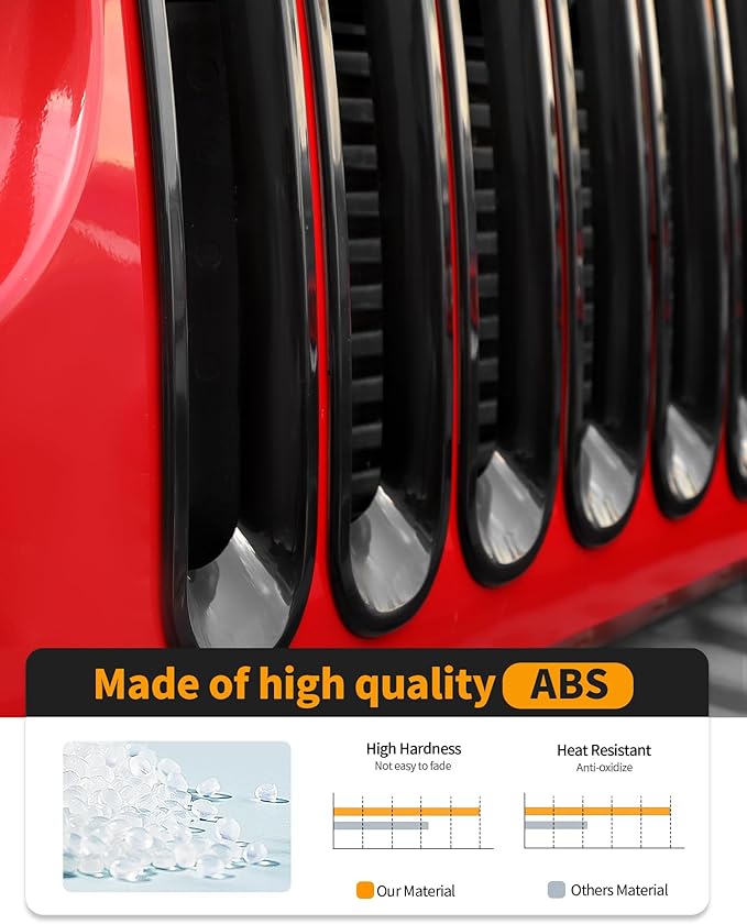 - 【Stylish Upgrade】 Adds a sleek and glossy finish to your Jeep’s front end, enhancing its rugged look and making your vehicle stand out on or off the road.
