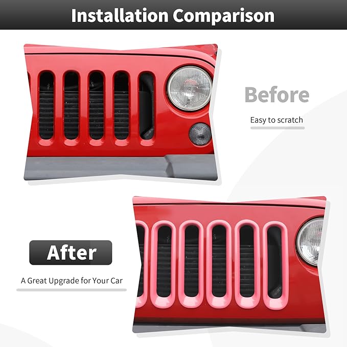 - 【Stylish Upgrade】 Adds a sleek and glossy finish to your Jeep’s front end, enhancing its rugged look and making your vehicle stand out on or off the road.