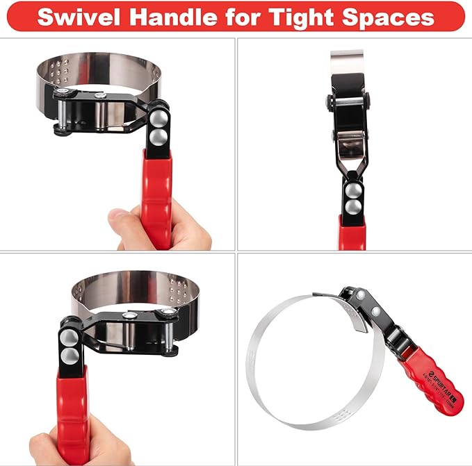 - Robust Construction: The swivel oil filter wrench band is made from stainless steel and reinforced joints for higher strength and durability. The corrosion-resistant materials ensure reliable performance in tough automotive environments, making it a long-lasting tool for professionals and DIYers alike