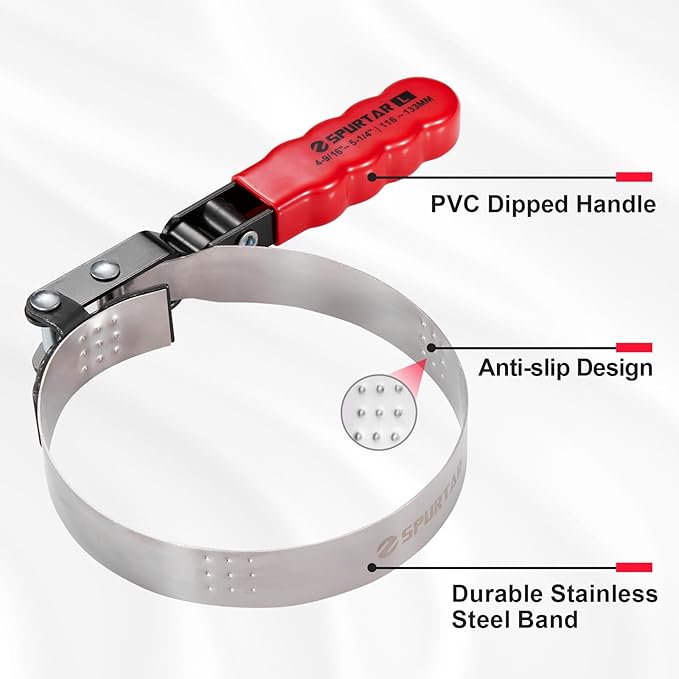 - Anti-Slip Handle: Spurtar oil filter removal tool has an ergonomically designed soft PVC handle for a comfortable strong grip, reducing hand fatigue during extended use. The anti-slip design ensures better control, allowing you to remove stubborn oil filters with minimal effort, even in slippery conditions
