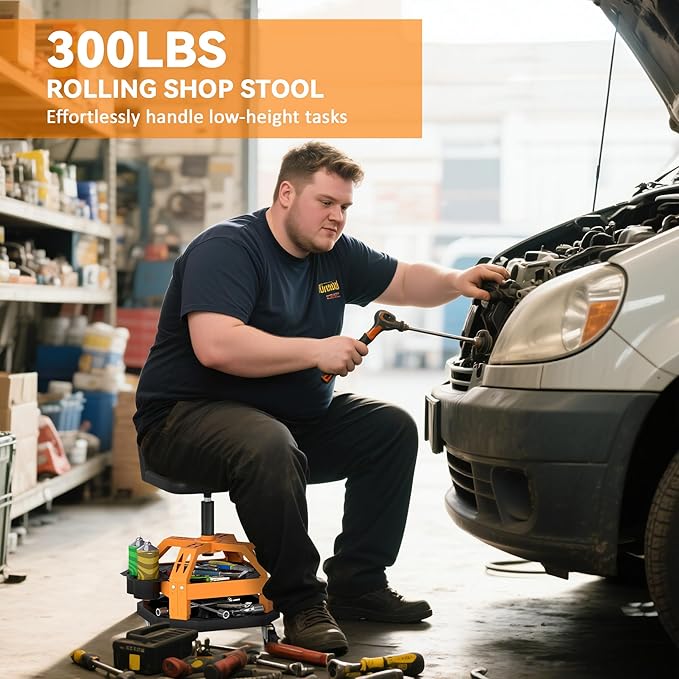 - 300 lbs Weight Capacity: Built with a thickened steel frame, this rolling stool supports up to 300 lbs—offering reliable stability and deformation resistance for long-term use. Great for middle-height tasks without the strain of squatting
