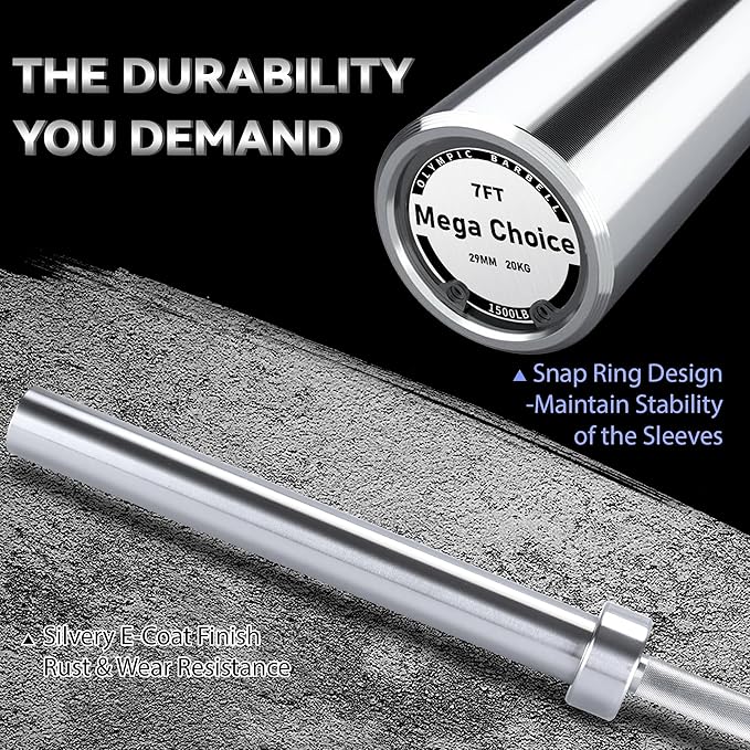 - 【Exceptional 1500LB Load Capacity】 This 7FT Olympic barbell supports up to 1500lbs, making it perfect for heavy-duty weightlifting, powerlifting, and intense training. Whether you're a beginner or professional athlete, its high-capacity steel construction ensures safety and durability during squats, deadlifts, and bench presses.
