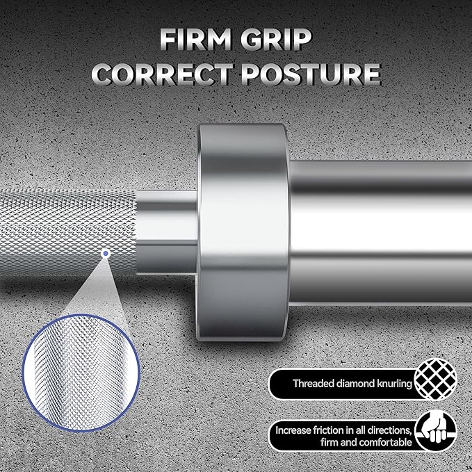 - 【Superior Knurled Grip for Maximum Control】 The deep knurling pattern on this 45LB weight bar provides an anti-slip grip, enhancing safety during high-rep workouts. Designed for competitive lifting, it reduces hand fatigue and improves performance in snatches, cleans, and overhead presses.