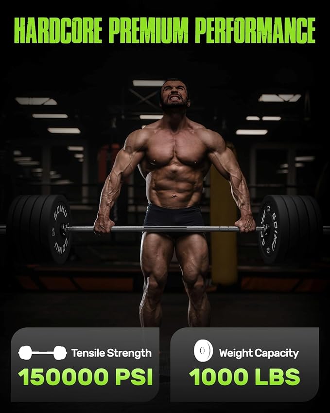 - 【Grip. Lift. Dominate.】The barbell adopts a dual-marking knurl design, clearly indicating the correct grip positions for both powerlifting and Olympic weightlifting. The 1.2mm diamond knurling on the surface not only ensures a secure grip but also mitigates the impact of sweating, preventing a drop in friction.