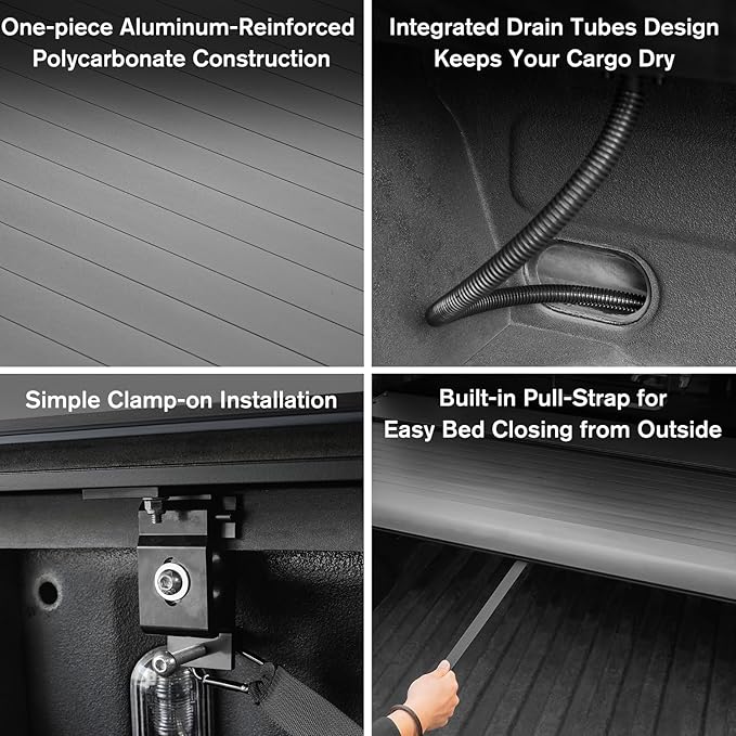 - Smooth One-handed Operation: The manual retractable mechanism is equipped with low-damping bearings, which reduces the pushing resistance by 40%, and the cover can be smoothly closed and closed with one finger. A built-in strap simplifies closing the cover at the tailgate, providing a seamless and efficient user experience for everyday use.