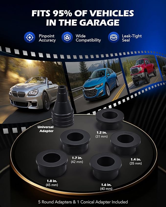 - Works on Almost Every Radiator: With 5 different adapters (1.2, 1.4, 1.6, 1.7, & 1.8 in.) and a conical adapter, plus US, EU, and Japanese standard fittings, this coolant fill kit adapts to most coolant bottles for hassle-free refills