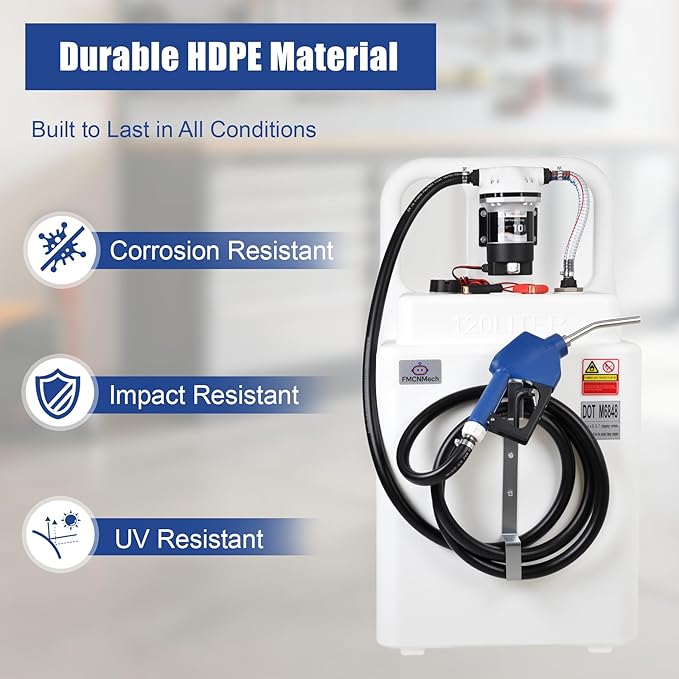 - [32 Gallon Large Capacity Tank] High-capacity design provides ample fluid storage for multiple refills. Ideal for diesel trucks, tractors, pickup trucks, and farm maintenance use.
