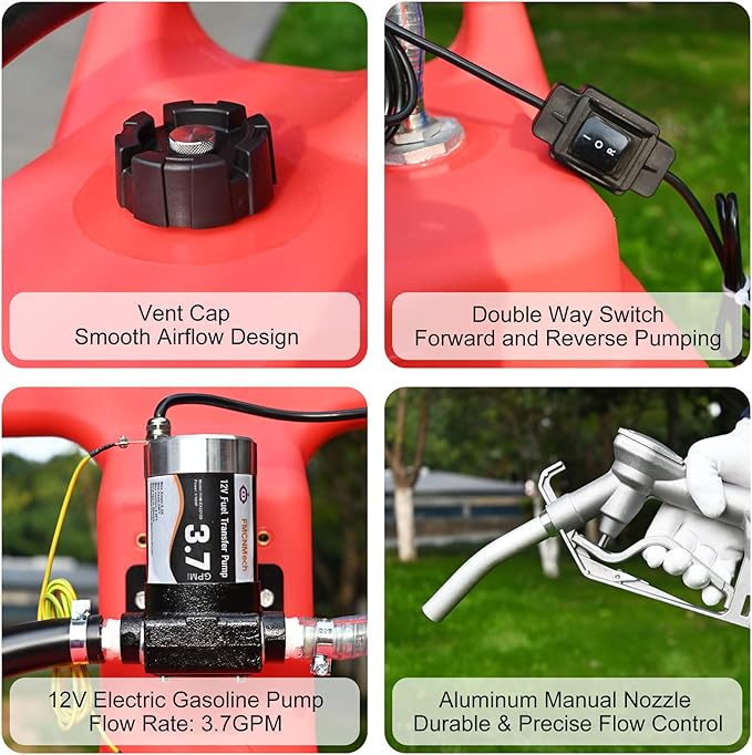 - [3.7GPM Electric Pump]High-efficiency 12V DC fuel transfer pump delivers up to 3.7 GPM flow rate with forward and reverse flow control, making fuel delivery flexible and safe for gasoline, diesel, or kerosene.