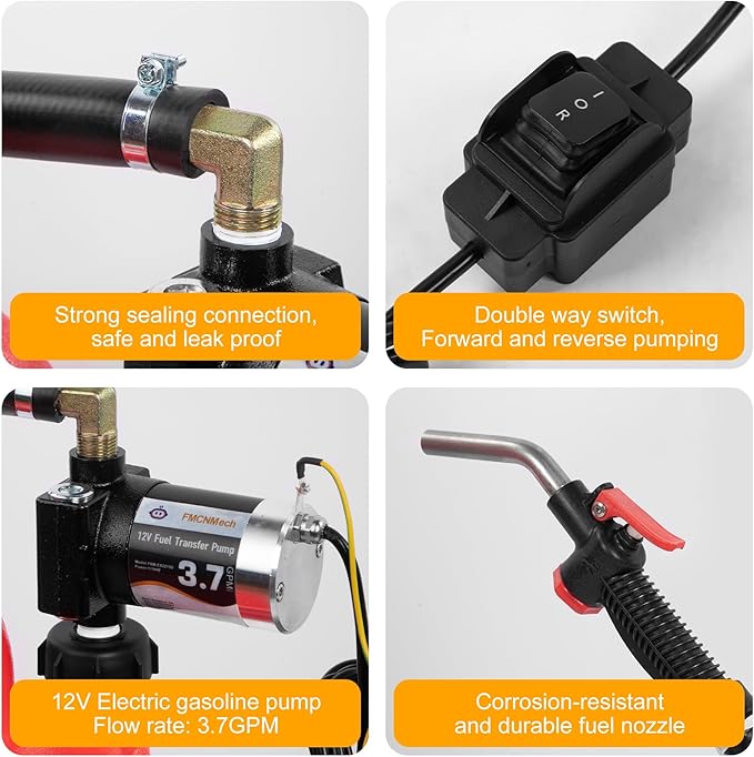 - [12V Electric Pump] Delivers up to 3.7 GPM flow rate with forward & reverse pumping function. Compatible with gasoline, diesel, and kerosene, providing fast, safe, and flexible fuel transfer for farm, marine, and construction use.