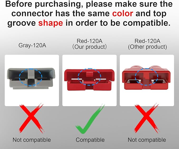 - Good Quality:120A plug connectors are made of high quality PC flame retardant material with excellent heat, durability and corrosion resistance. The terminals are made of silver-plated copper for excellent and stable conductivity. This ensures the durability of Anderson connector kits in harsh environments.