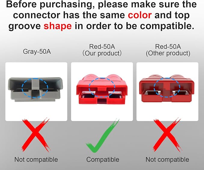 - Good Quality:50A plug connectors are made of high quality PC flame retardant material with excellent heat, durability and corrosion resistance. The terminals are made of silver-plated copper for excellent and stable conductivity. This ensures the durability of Anderson connector kits in harsh environments.
