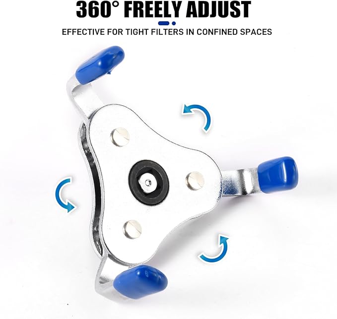 - Adjustable 3-Jaw Grip: Features a superior 3-jaw design that provides even and powerful gripping force compared to traditional 2-jaw or strap wrenches. It effectively prevents slippage, making it easy to remove even the most stubborn, overtightened filters