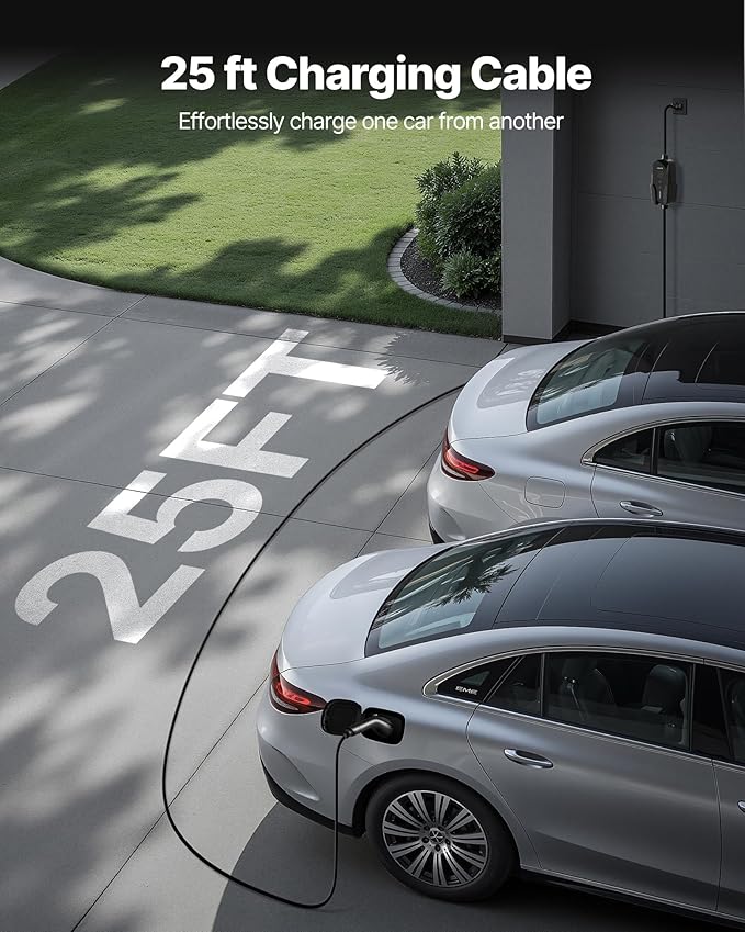 - Universal J1772 Compatibility: Compatible with multiple electric and plug-in hybrid vehicles. This level 1/2 EV charger features a 25 ft cable, easily reaching across driveways or garages. Ideal for home with multiple EVs or shared charging stations