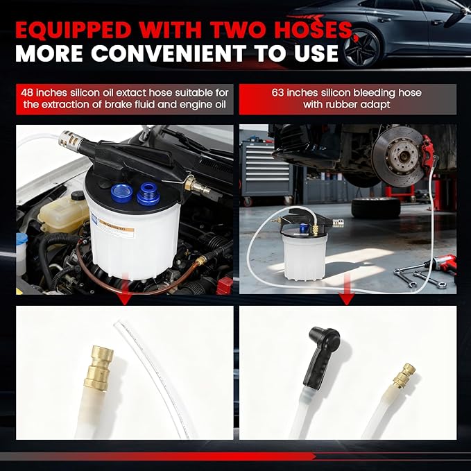 - Safe & Clean – Reliable Brakes! 1Qt (1L) brake fluid refill bottle; overflow protection + leak-proof hoses keep it clean—ensures reliable brakes.