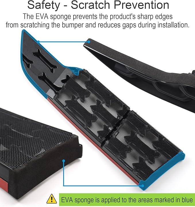 - Scratch Prevention: EVA sponge is attached to the sharp edges on both ends, effectively preventing scratches to the bumper and paint during installation while ensuring a gap-free fit.