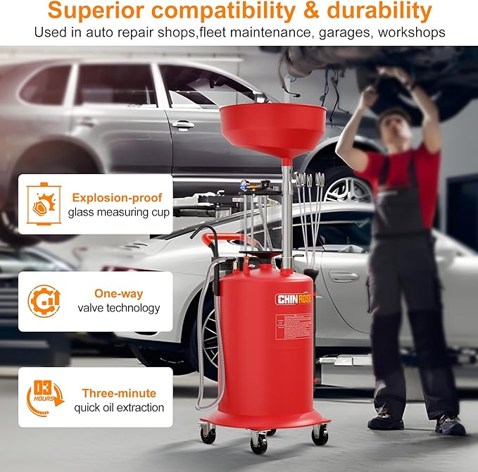 - Upgraded Pneumatic Oil Drainer & Extractor with High-Quality Measuring Cup, Adjustable Height, and Large Capacity Tank