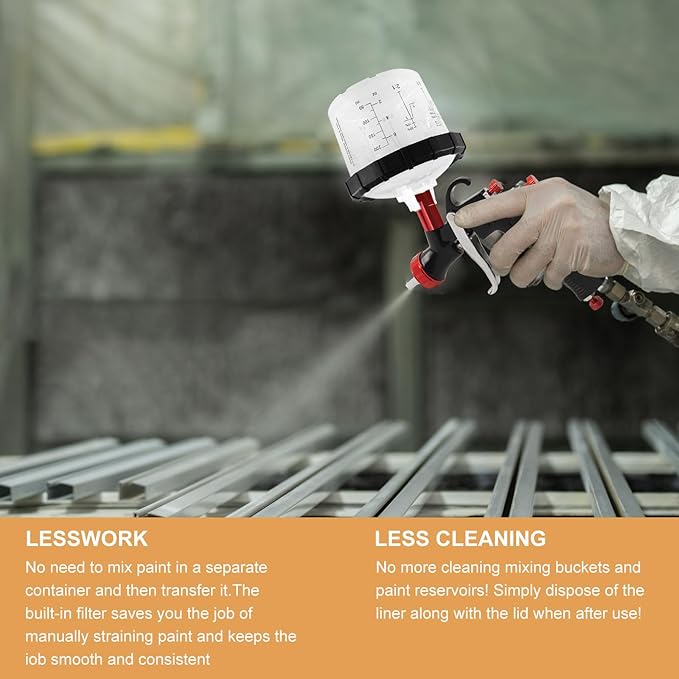 - Mixing Efficiency: Boost your spraying efficiency and save labor, time and money by using RRJ paint cups. The disposable cups support the entire coating process, making it easy to refill or replace them, which in turn minimizes cleaning efforts and agent consumption
