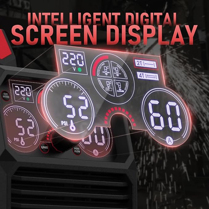 - DIGITAL DISPLAY: Take full command of your work with the centralized digital display. It provides real-time monitoring of critical parameters like air pressure, voltage, and current, enabling immediate adjustments for optimal performance and peak efficiency. For added peace of mind, the built-in diagnostic system instantly displays error codes to guide troubleshooting.