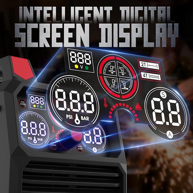 - DIGITAL DISPLAY: The latest digital display centrally shows parameters such as air pressure, voltage, current, etc., allowing users to view the status of the equipment in real time, adjusting the operation in a timely manner, and improving the efficiency of the operation. There will be an error code system on the screen if there is a problem with the machine.