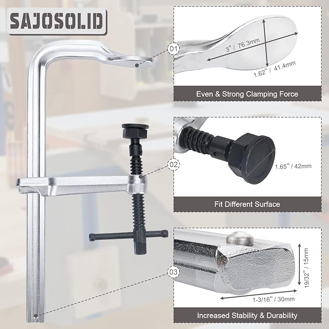 - Stress Resistance: Constructed from High-Strength Forged Steel, It Delivers Exceptional Impact Resistance and Scratch Resistance, This Ensures F Clamps Remains Resistant to Deformation and Damage during Heavy-Duty Operations, Offering Superior Durability