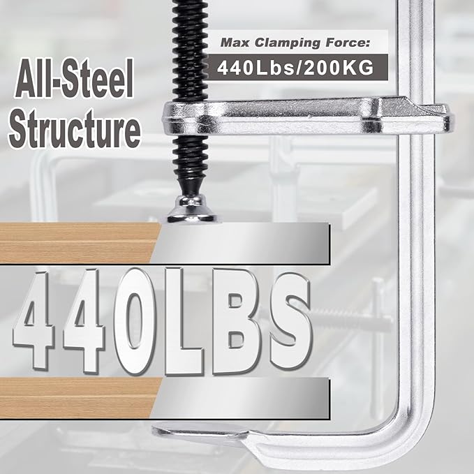 - Max Load Capacity: Our F-Clamp Crafted From High-Hardness Forged Steel, It Offers Exceptional Impact Resistance and Deformation Resistance. With a Clamping Force of 440 Lbs, It is Suitable for Heavy-Duty Applications Such as Welding and Pipe Clamping