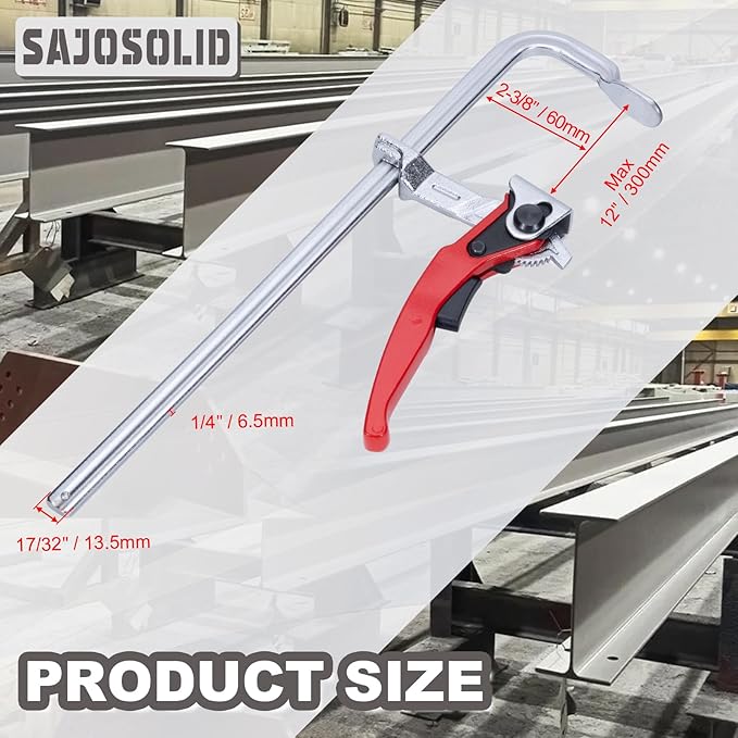 - Quick Release Track Saw Clamp: These Clamps Feature Adjustable Jaw Openings up to 12 Inch (300 mm), a Throat Depth of 2-3/8 Inch (60 mm), Effortlessly Handle Workpieces, Rail Size: 17/32 x 1/4 Inch (13.5 x 6.5 mm) for Durable and Comfortable to Use