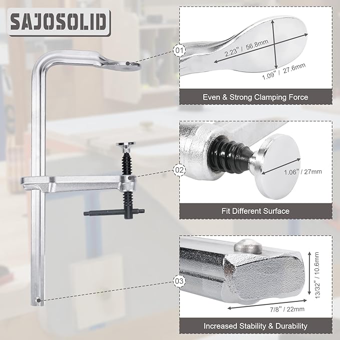 - Versatile Applications: This F-Clamp Provides evenly Distributed Clamping Pressure, Effectively Meeting the Needs of Various Work Scenarios Including Structural Steel Welding, Woodworking, and Metal Component Processing